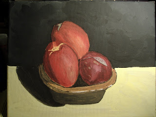 My two newest paitings are "Custom Made Drink" and "Unfinished Pears". When I was painting the pears I had three pears sitting my my painting table, but I need to take them for lunch. So the painting really is unfinished because I had to eat my "subject".